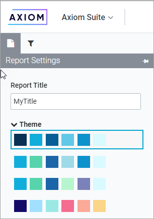 Specifies the color theme to apply to the report. The theme affects colors used in visualizations and other report elements. The color theme can also be changed when viewing the report, to change the colors used in the current session only. NOTE: If the report is a new report that has not yet been saved, the options to change the theme are not available until the report has been saved. |