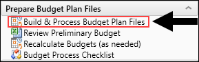 1. Go to Bud Admin > Prepare Budget Plan Files and double-click Build & Process Budget Plan Files.