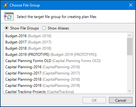 Budget file groups contain plan files with budget data for each department in the organization. However, you do not copy individual plan files when cloning a file group. Instead, you use the Build & Process Budget Files job in the Axiom Scheduler to generate a new set of plan files for the new budget year.