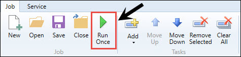 6. After you select the options you want, in the Job ribbon, click Run Once.