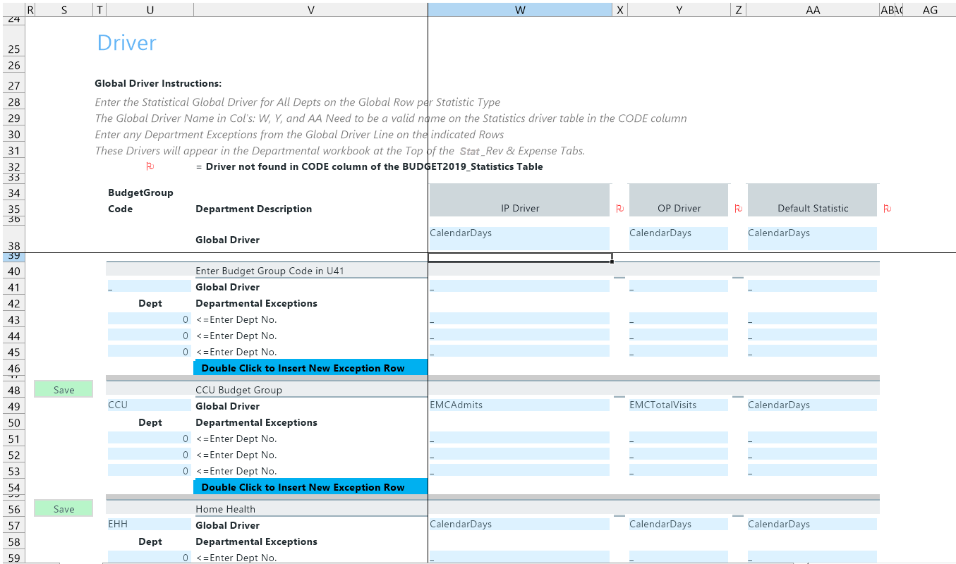 Drivers must be defined in column A on the Statistics sheet in order to be used.