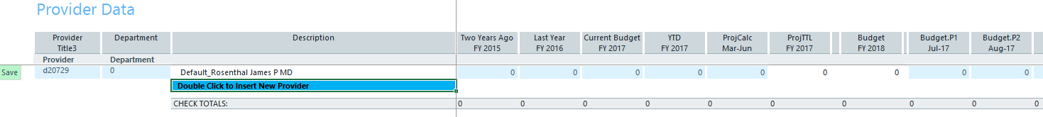 Use this driver to input provider compensation that is pushed to the ProviderComp tab in the plan files. To add a new provider, double-click Double Click to Insert New Provider.