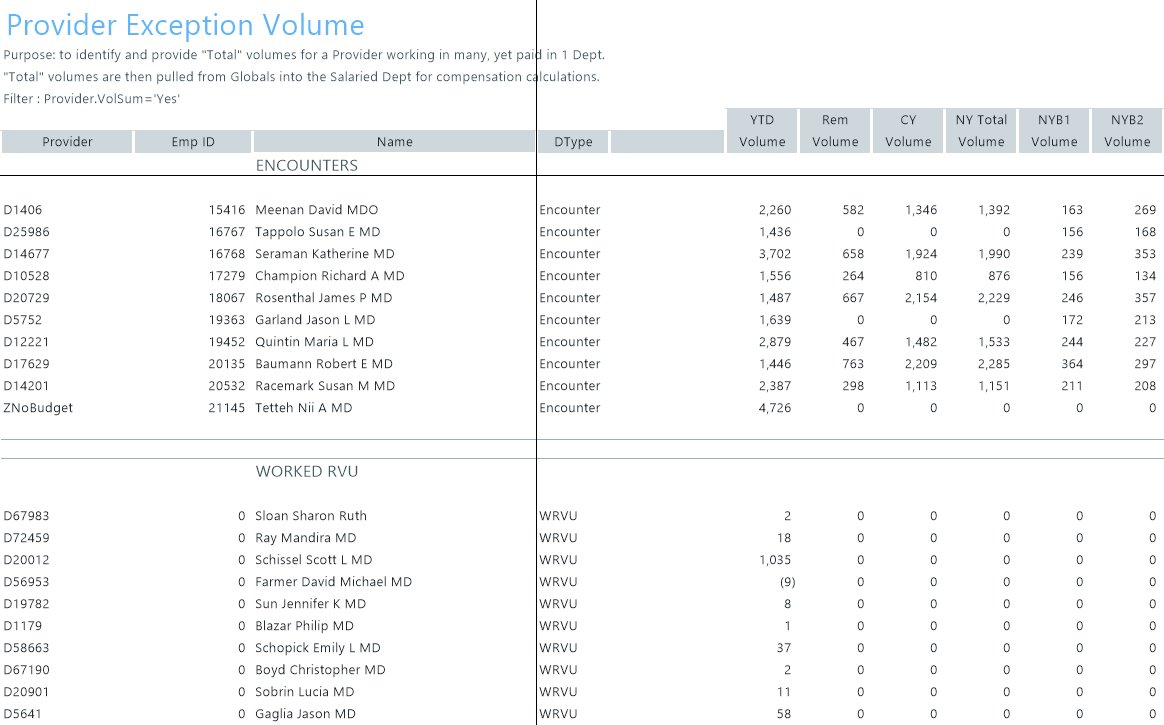 Use this driver to identify and provide total volumes for a provider who works in many departments, yet is paid in a single department. This information is for display purposes only.