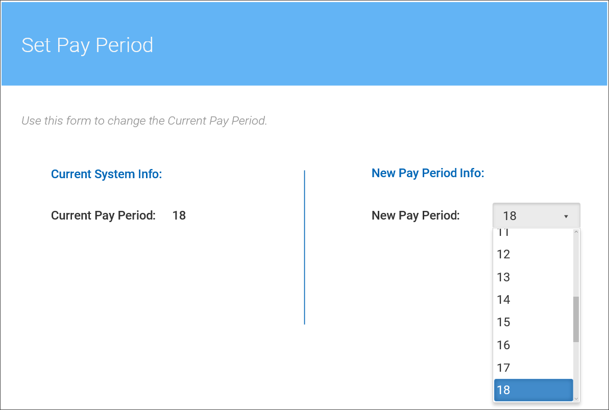 Use the Change Payroll 27 Tables-Current Period utility to change the Payroll 27 tables current period.