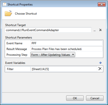 In the Shortcut Properties dialog, the RunEvent command is now listed as the shortcut target, and the relevant shortcut parameters are now available.