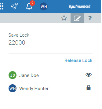 The user with the save lock can click the down arrow next to the save icon to open the dialog.