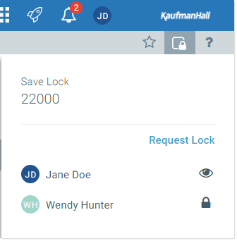 Example Save Lock panel where the current user does not have the save lock and cannot save data