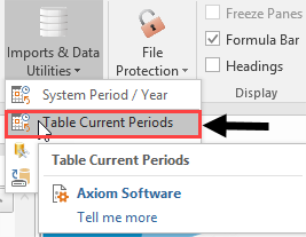 1. In the Admin ribbon tab, click Imports & Data Utilities > Table Current Periods.