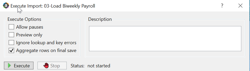 7. In the Execute Import: 03-Load Biweekly Payroll dialog, click Execute.