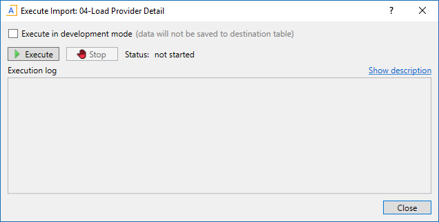 In the Admin ribbon tab, in the Database group, click Imports & Data Utilities > Imports > Management Reporting > 4-Load Provider Detail, and click Execute.