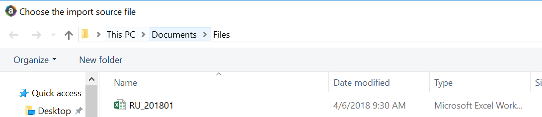Make sure to create and save the import file to a directory accessible by the Axiom Application server. We recommend naming the file with a RU_prefix.