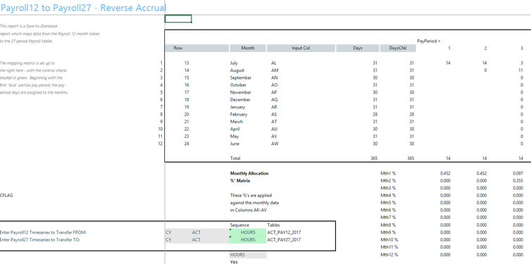 NOTE: Use the Monthly to BiWeekly utility to take budgeted Payroll12 data and reverse accrue it to a biweekly data set.