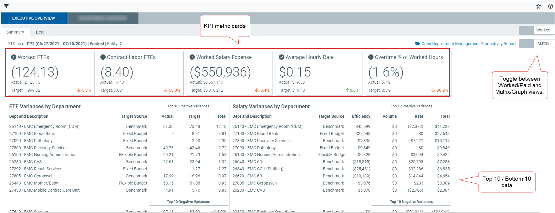 NOTE: To switch views between Worked/Paid and Matrix/Graphs, click the toggles in the right corner. The default view is Worked/Matrix.