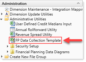 1. In the Fin Plan Admin task pane, access theAdministration section, click Administrative Utilities, and then double-click FP Data Collection Template.