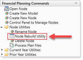 11. In the task pane, click Financial Planning Commands > Node Utilities, andthendouble-click Node Rebuild Utility.