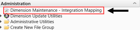 To open the Dimension Maintenance Utility, in the Fin Plan Admin task pane, in the Administration section, double-click Dimension Maintenance - Integration Mapping.