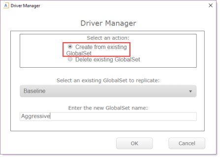2. In the Driver Manager dialog, select Create from an existing GlobalSet.
