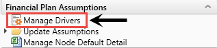 1. In the Fin Plan Admin task pane, in the Financial Plan Assumptions section, double-click Manage Drivers.