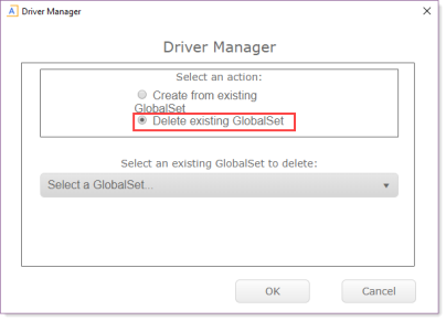 2. In the Driver Manager, select the Delete existing GlobalSet option.