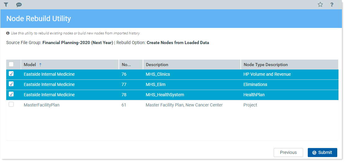 NOTE: Before you can use the Node Rebuild Utility, you must first import the data using the integration utility or the FP Data Collection Template.