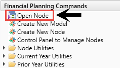 To open nodes from last year, click Prior Year Utilities, and double-click Open Prior Year Node.