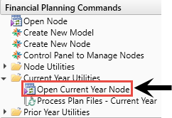 To open nodes for this year, click Current Year Utilities, and double-click Open Current Year Node.