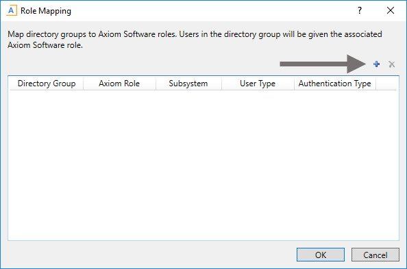 • In the Role Mapping dialog, click the Add mapping icon in the top right to add a mapping row to the dialog.