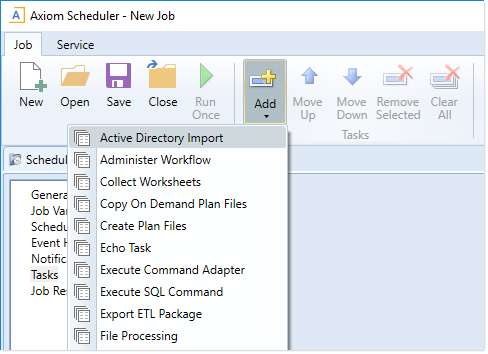 Once Active Directory synchronization has been enabled for your system, you must create a Scheduler job in order to import users from Active Directory into Axiom Financial Planning.