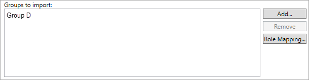 The defined role mappings do not display in the Groups to import box. If you want to review or edit the role mappings, click Role Mapping.