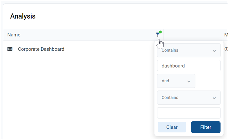 If multiple columns are filtered, the filters are combined using AND, and the grid only shows items that match all of the filters.