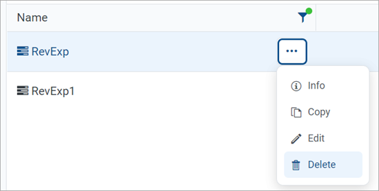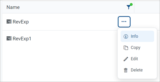 Locate the fixed row structure that you want to copy, and then hover your cursor over the Name column to make the ellipsis icon visible. Click the icon and then select Copy from the menu.