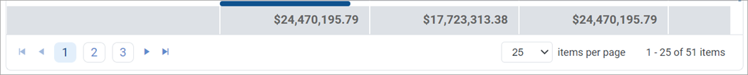 If the web report uses dynamic rows, the data is paged to show a specified number of records per page. If the data in the grid exceeds the page limit, move between pages using the page controls at the bottom left of the grid.