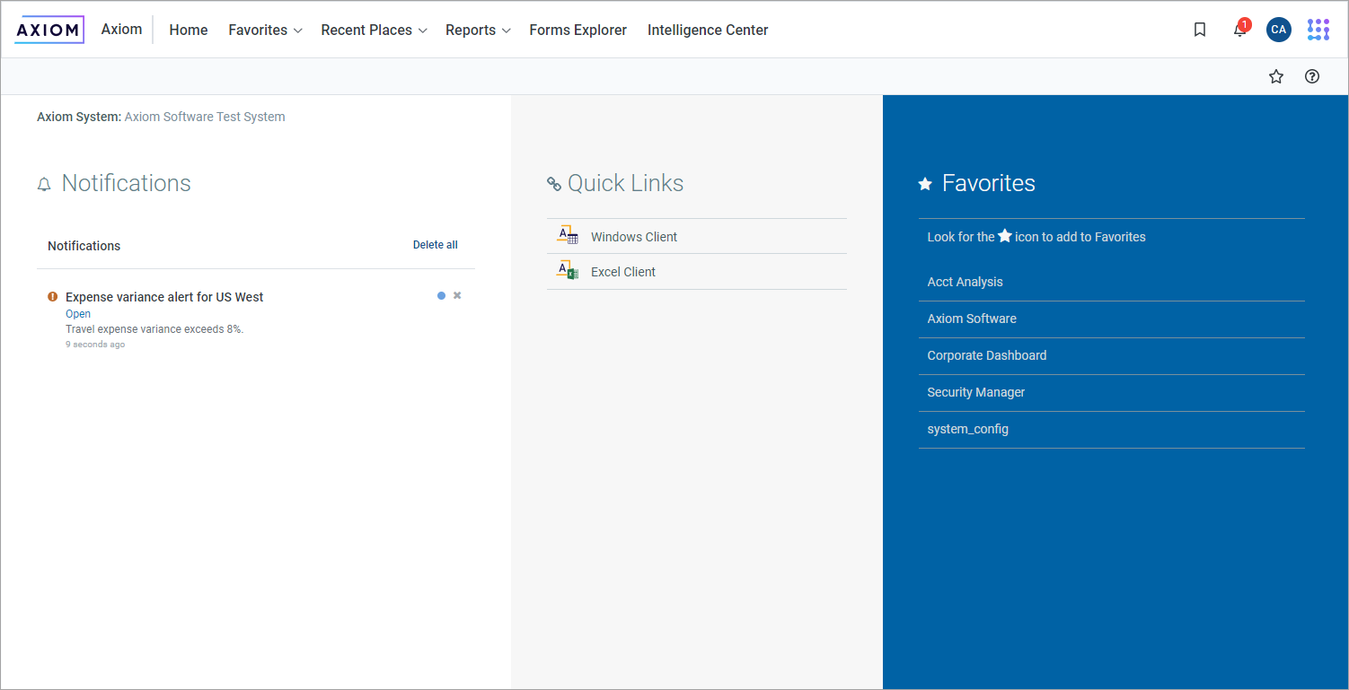 - The default Axiom Budget Planning and Performance Reporting home page