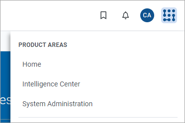If you are in a system with installed products, the Area menu may contain product names instead of the Home item. In that case, you can select a product name to return to the home page for that product.