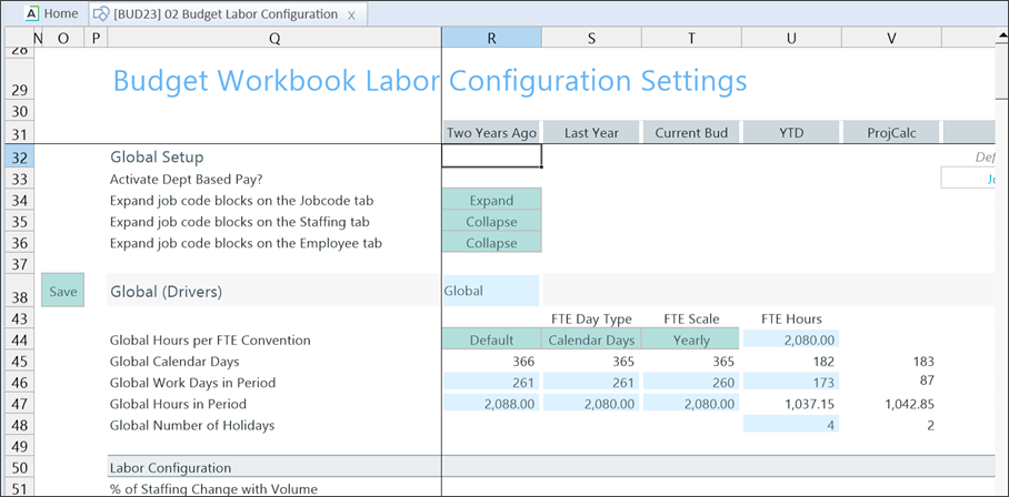 NOTE: Budgeting Analyst and Budgeting Admin users, or users with access to the 02 Budget Labor Configuration driver and the Global Driver Management role, can edit the FTE scale in this driver.