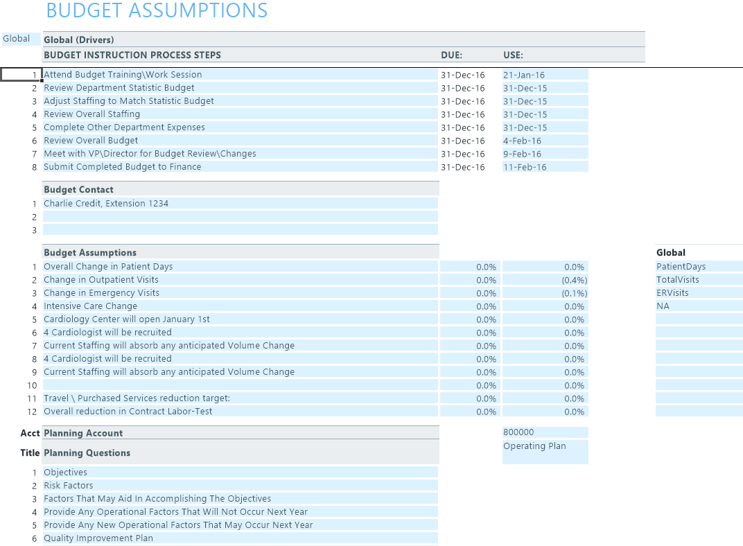 Planning Questions Type the questions to display on the Planning sheet in budget plan files.