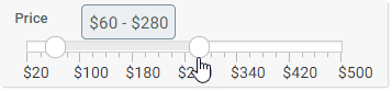 As a handle slides across the bar, the values show in a tooltip so that users can see the available values between the labeled tick marks (if applicable).