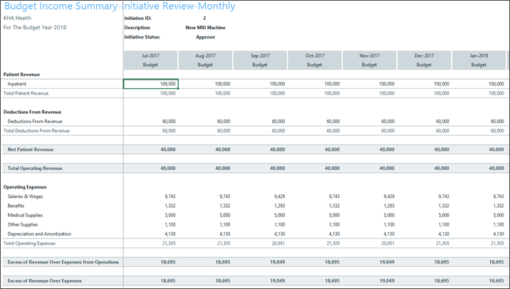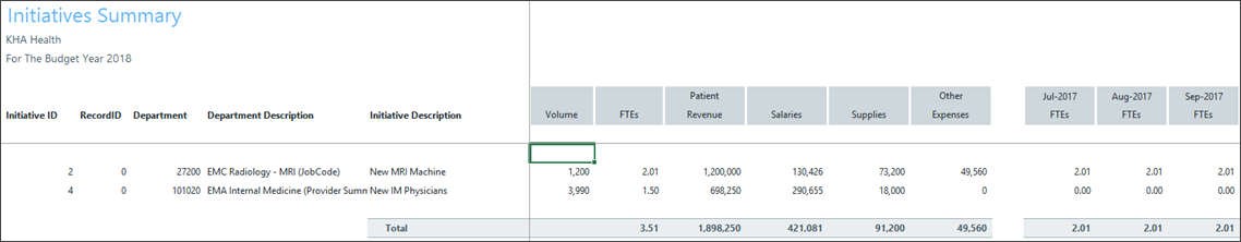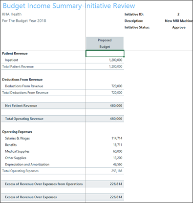 Main > Navigation > Explorer > Libraries > Reports Library > Budgeting Reports > Initiatives Analysis.
