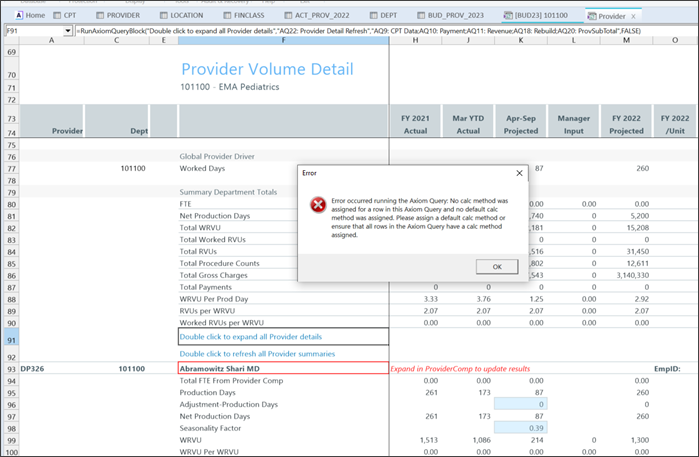 When a recalculation is run, the following error appears when Provider Detail is expanded: