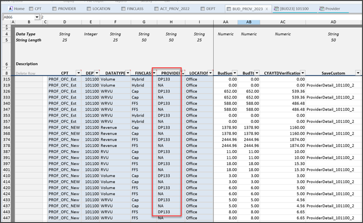 Bud_Prov_2023 table now has duplicate data for provider Feins (DP133) and NA.