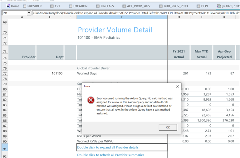 Use to identify the main issues that cause AQ18 Rebuild errors associated with the Provider Detail tab within the Provider Master template. This utility helps reduce potential issues that cause AQ18 Rebuild errors when budget plan files are opened after a recalculation.