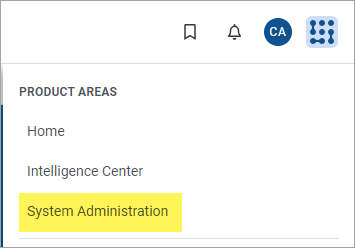 in the navigation bar The common bar across the top of pages in the Web Client. The Navigation bar provides access to system and product features..From the Area menu, select System Administration.