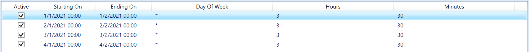 A new row appears in the right side of the job. By default, the new row is active but does not have start/end dates or any specific recurrence settings.