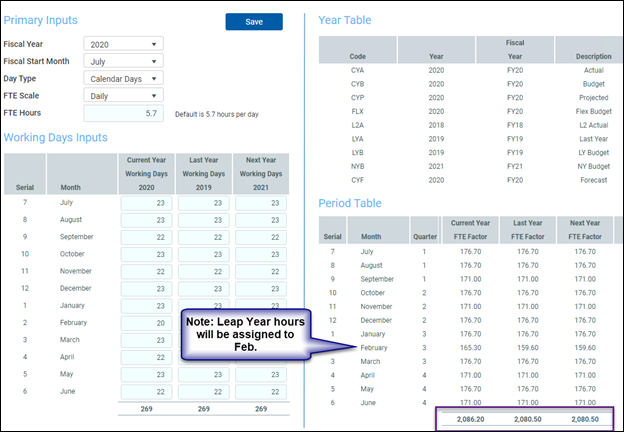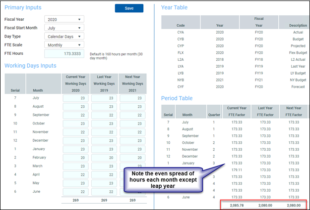For Budget Planning, the 02 Budget Labor Configuration driver will use the default FTE scale created in the Year/Period Form but allow for modifications to the default at the Global and Budget Group level.