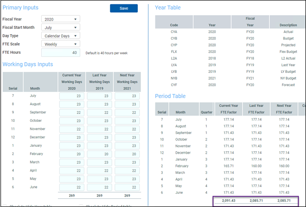 NOTE: After you enter your Primary Inputs, the Period Table section displays the calculated results in real time which allows you to view your configuration before saving data.