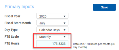 In the FTE Scale drop-down, select Monthly.