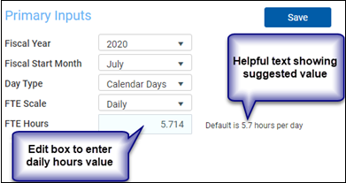 NOTE: The FTE Hours default for this configuration is 5.7 hours per day.